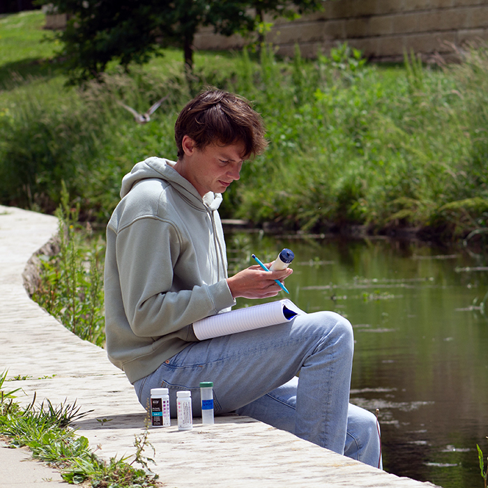 Joey Wohlers (C'24, MM'25) is a farm bill biologist in Oberlin, Kansas, with Pheasants Forever and Quail Forever. He interacts with landowners and helps with conservation. In summer 2025, Joey researched E. coli in Dubuque's waterways after he received a microgrant through the city of Dubuque's participation in Round 2 of the Bloomberg Philanthropies' Youth Climate Action Fund. He found there is little risk associated with E. coli in the waterways he tested - Bee Branch Creek and Catfish Creek at the Mines of Spain.